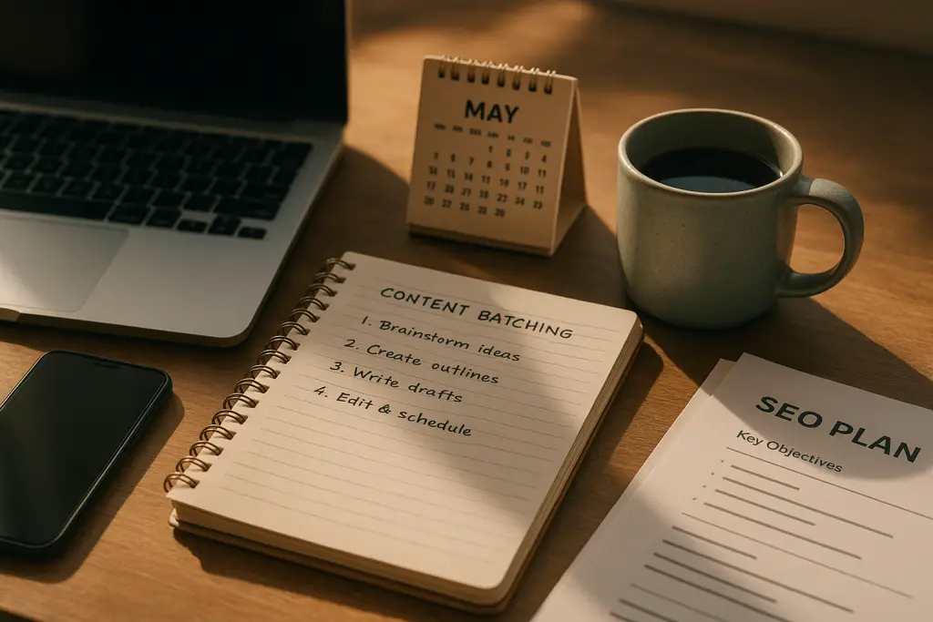 Here’s where content batching becomes your best friend. Spend one day every month drafting briefs for four deep dives. Block a second day to outline all four, including internal links you plan to add and posts you’ll refresh in parallel. Then draft one per week, even if you’ll publish only two that month. Front-loading the work reduces stress and gives you cushion when life happens.