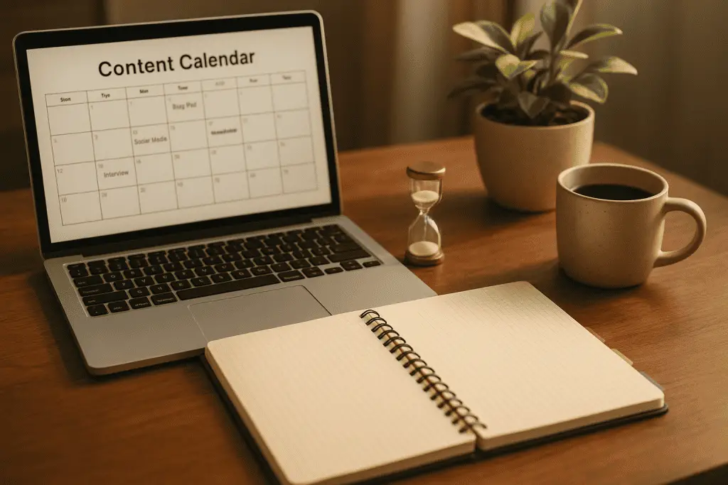 Draft a simple calendar. Instead of committing to weekly posts immediately, plan in cycles: one pillar and two to three supporting posts per cycle. A “cycle” can be four to eight weeks depending on your capacity. Your calendar becomes realistic when you batch each cycle, not when you squeeze posts into leftover time.